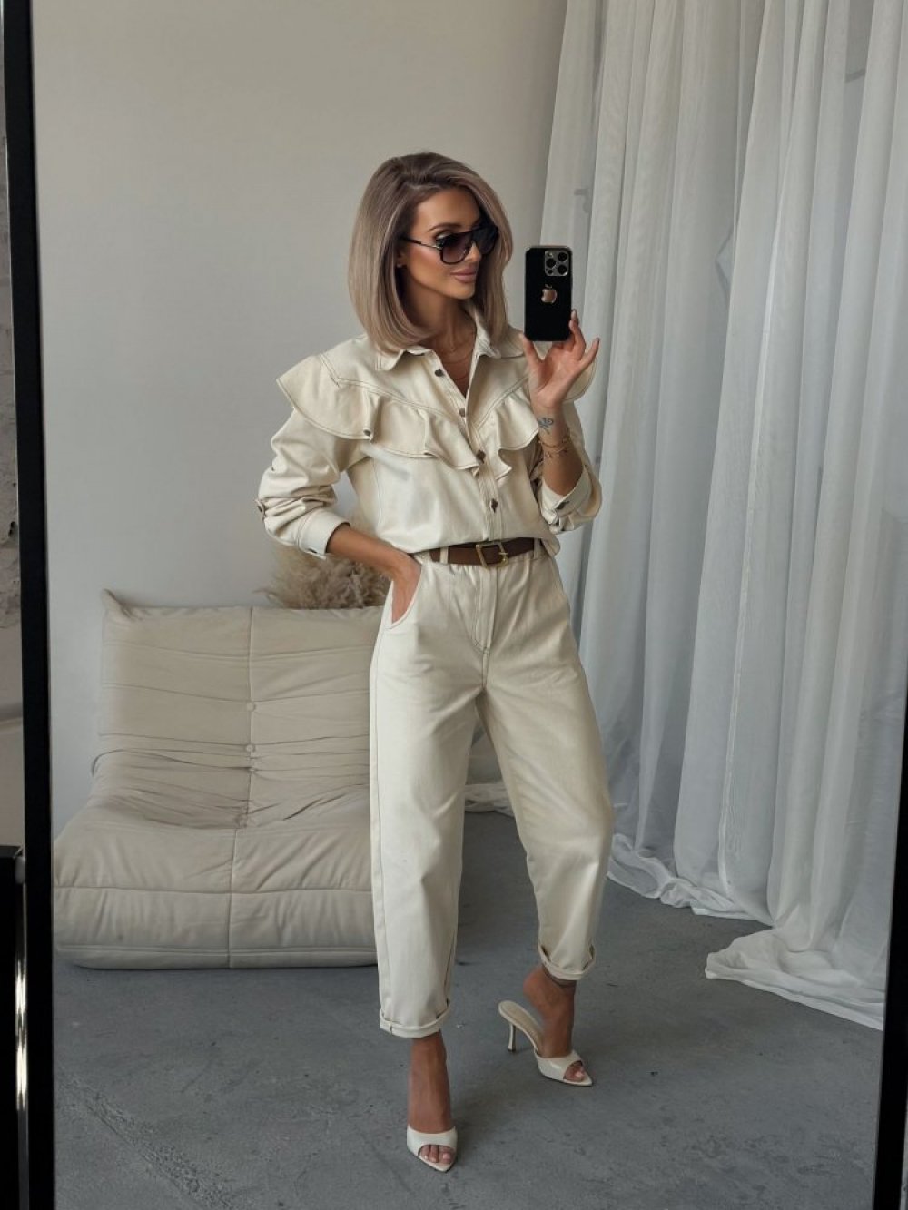 Spodnie jeansowe CHILLIN beżowe