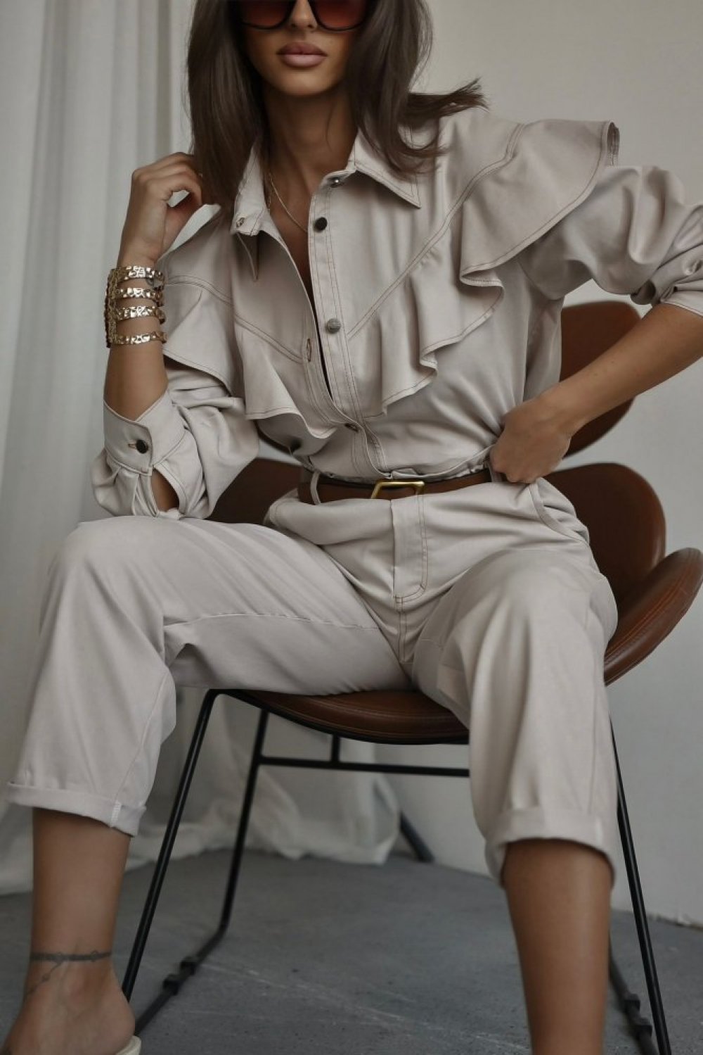 Spodnie jeansowe CHILLIN beżowe